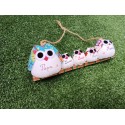 Jolie famille de 4 chouettes hiboux! Parfait pour les familles de 4 personnes (les 2 parents et les 2 enfants) ou pour les grands-parents avec leurs 2 petits enfants... les chouettes sont en tissus, posées sur une branche et suspendues à un cordon pour les accrocher. ! Idée cadeau pour sa famille ou à offrir! Personnalisation Offerte !